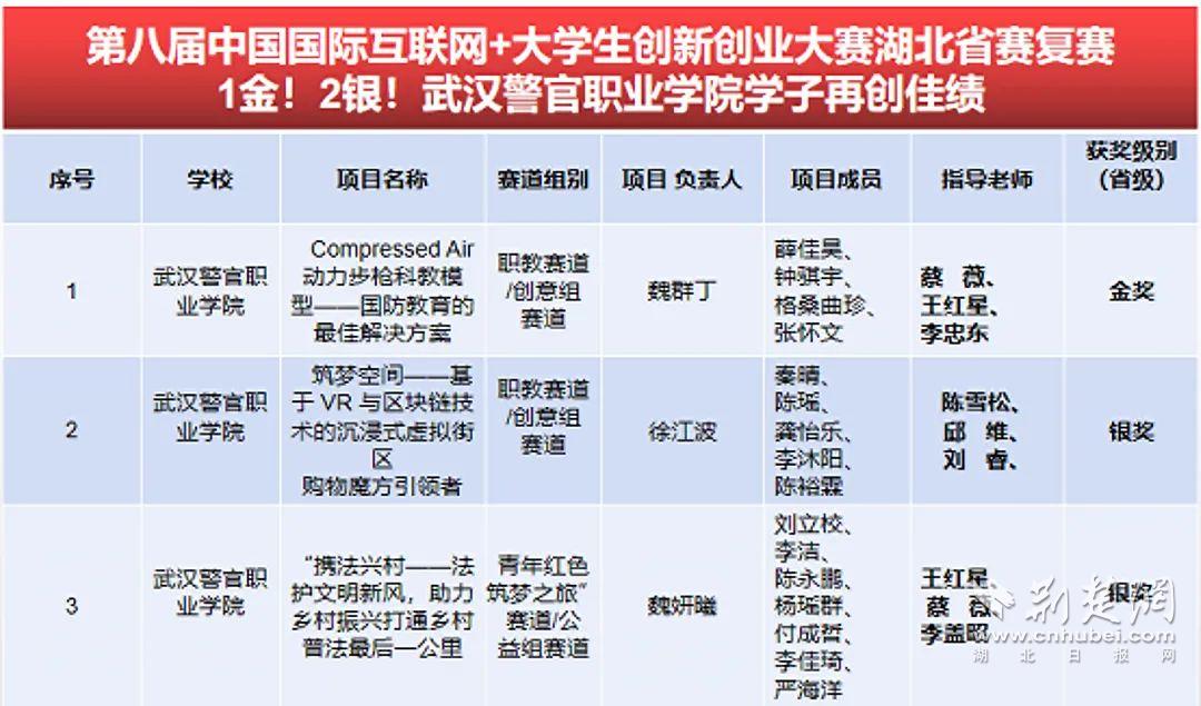 武漢警官職業學院獲獎團隊名單。通訊員供圖