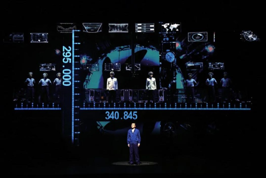不同于以往常規(guī)的傳記性舞臺(tái)作品,《深海》采用雙線敘事結(jié)構(gòu),將核潛艇的研發(fā)與主人公的內(nèi)心世界相融合,遞進(jìn)潛入人物的精神世界。