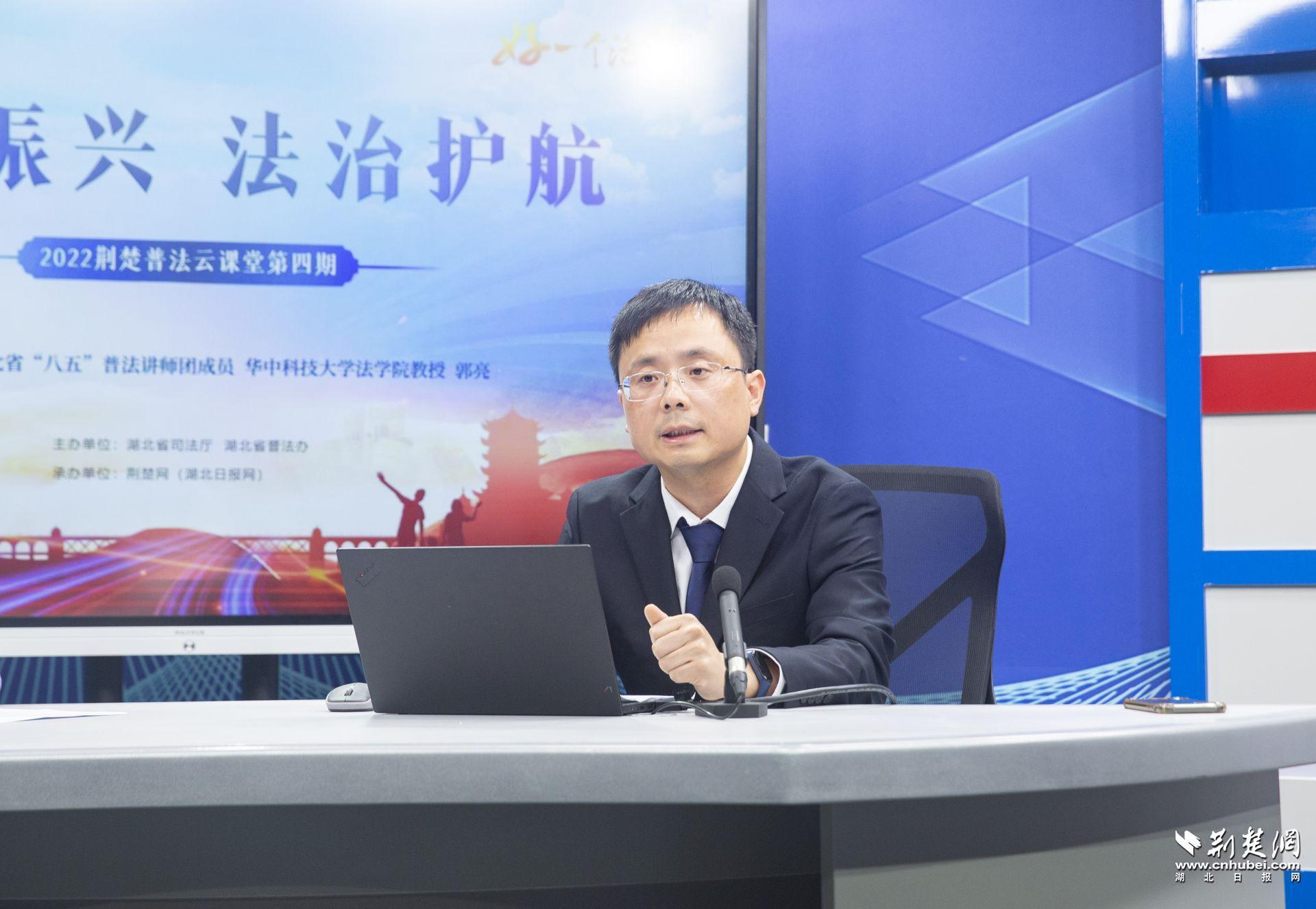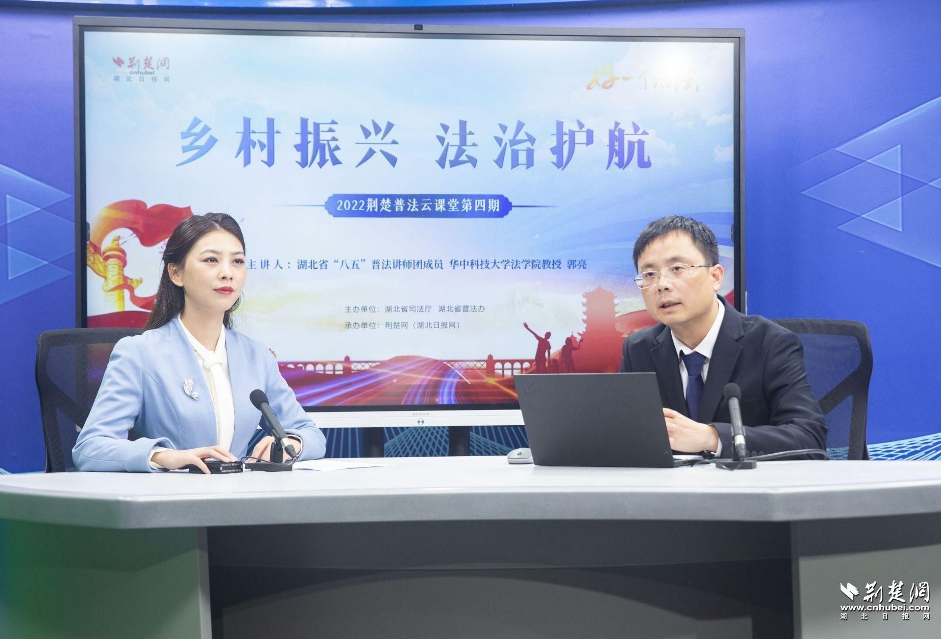 荊楚網(湖北日報網)訊(記者肖慧婷 實習生倪淑婭)“荊楚云課堂,名師來普法。”8月10日,由湖北省司法廳、湖北省普法辦主辦,荊楚網(湖北日報網)承辦的“好一個活‘法’”——2022荊楚普法云課堂第四期直播課在荊楚網直播間開講。湖北省“八五”普法講師團成員、華中科技大學法學院教授郭亮以“法治鄉村與基層善治”為主題進行授課,吸引了近55萬網友觀看。
