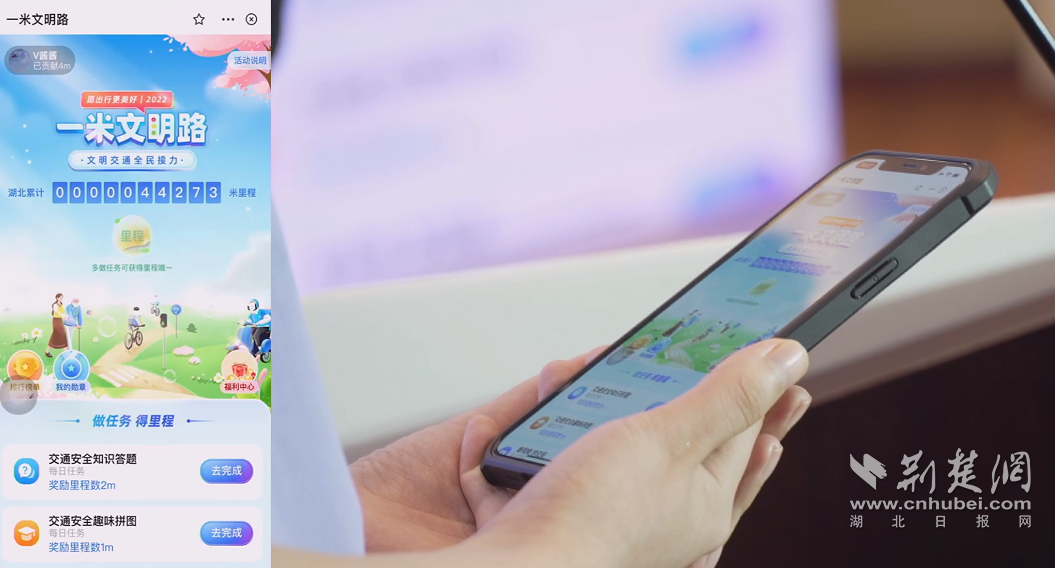 荊楚網(湖北日報網)訊(記者張揚 通訊員肖舒旋)在手機上完成任務,就能為湖北文明出行貢獻力量。8月10日,“愿出行更美好2022”暨“一米文明路”交通安全全民接力活動啟動儀式在武漢舉行。
