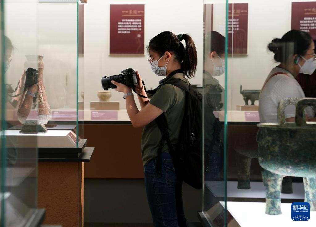 8月15日,華東師范大學(xué)學(xué)生、來自泰國的梅子妍在觀看展覽。