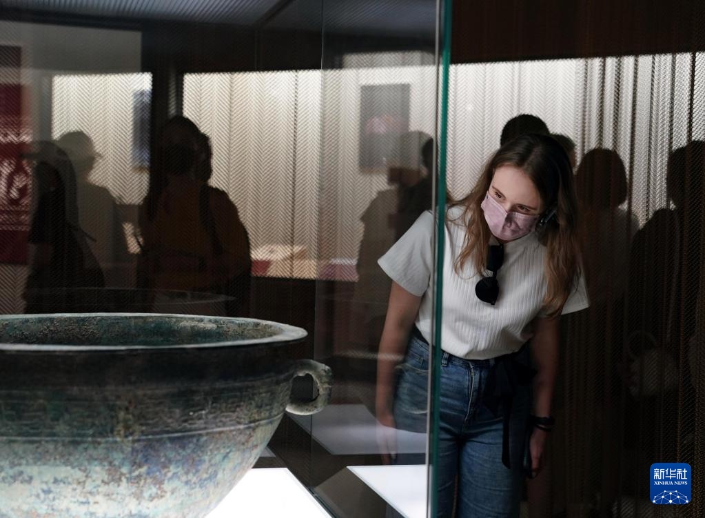 8月15日,上海交通大學(xué)學(xué)生、來自白俄羅斯的夏瀾在觀看展覽。