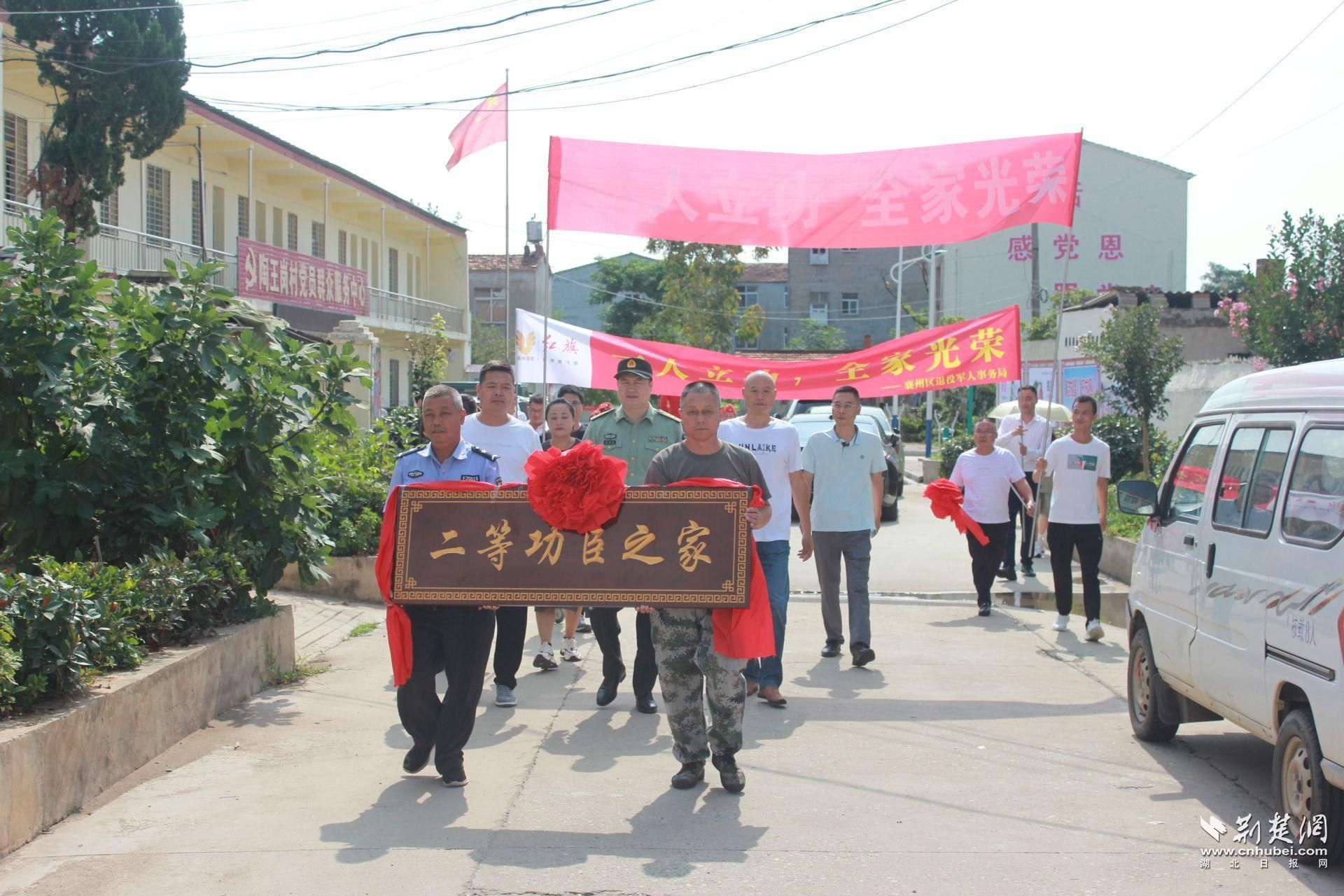 荊楚網(湖北日報網)訊(通訊員李順民 劉磊 王琨)近日,襄陽市襄州區雙溝鎮陶王崗村鑼鼓喧天,處處洋溢著喜慶的氛圍。襄州區委常委、人武部政委張峻峰,區退役軍人事務局黨組成員、副局長崔殿林一行為榮立二等功現役軍人李永正家庭送立功喜報、牌匾和榮譽獎金。