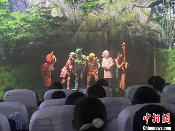 中新網濟南8月18日電 (李明芮)原創兒童劇《超級狗狗》18日晚亮相山東省話劇院,該劇3D全息投影技術的運用,讓畫面色彩更加鮮艷,空間感和視覺感使科技氣息更加濃厚,讓現場觀眾有了一次沉浸式體驗。