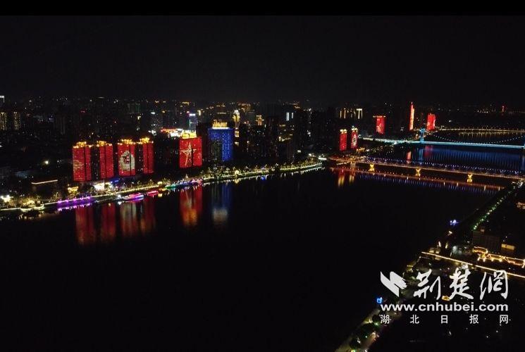 點亮一次漢江燈光秀。襄陽一江兩岸沿線的建筑、橋體全被彩燈點亮,以軍旗、軍人影像為核心元素的燈光秀絢麗上演,在炎夏點綴漢江夜空、點燃雙擁熱情,深化襄陽軍地軍民魚水深情。