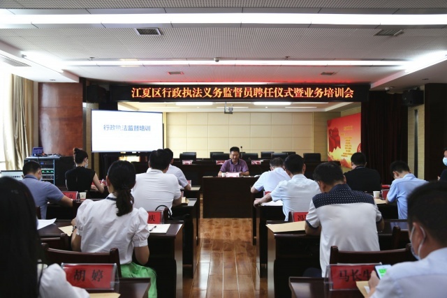 8月19日上午,江夏區首屆行政執法義務監督員聘任儀式暨業務培訓會議在區司法局舉行。