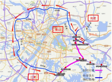 (圖8:外埠貨車江夏前往青山方向繞行線路)