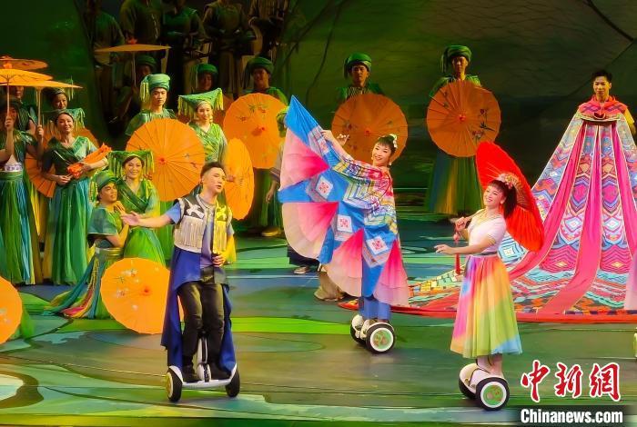 第十三屆中國藝術節第十七屆文華獎首場劇目《新劉三姐》于22日晚在天津開演?!⊥踉谟?攝