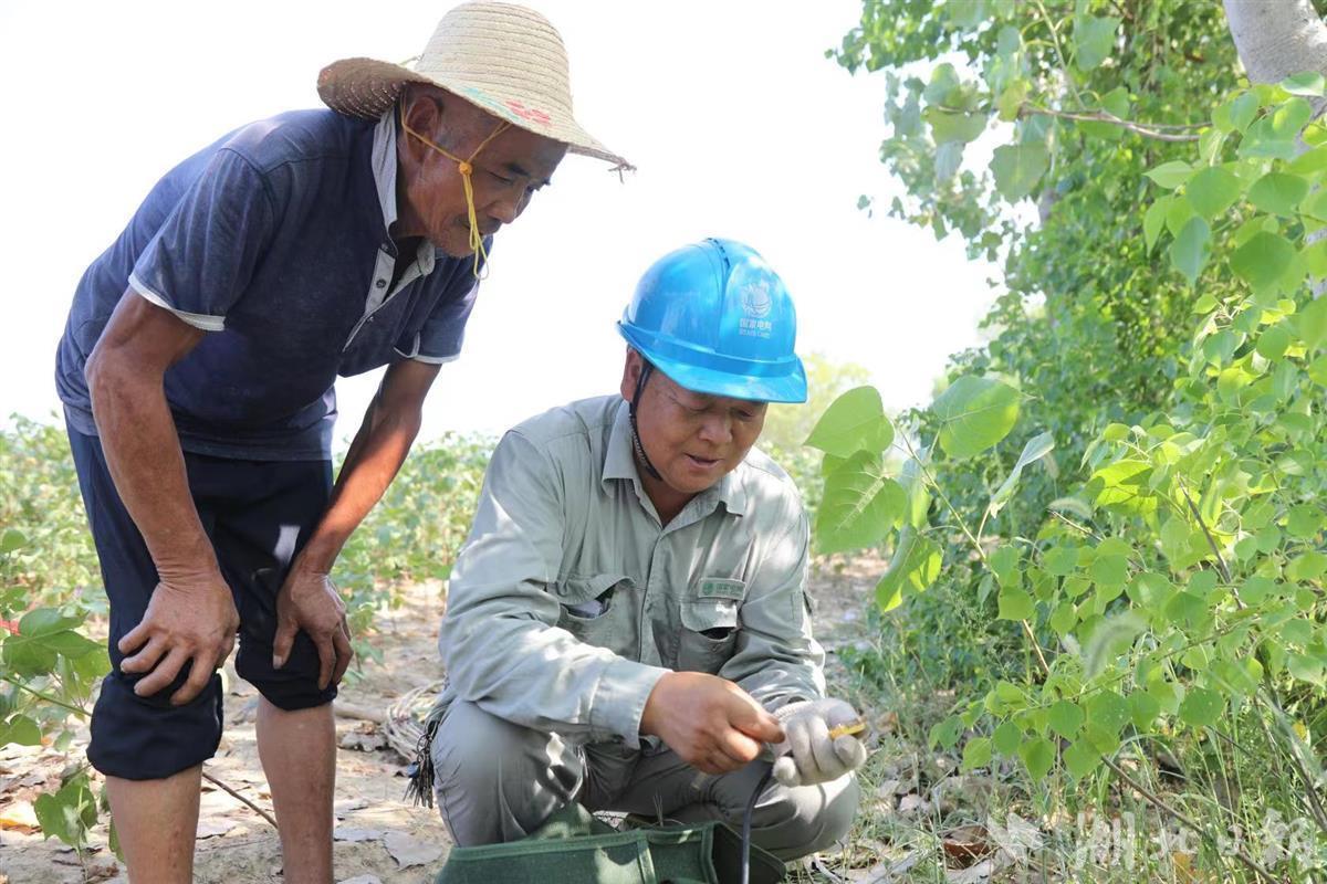 “師傅,表計已經安裝完成了,現在可以放心用電。”在何畈1號臺區杜家寨泵站,和平供電所技術員迅速為農戶安裝好灌溉用電表計后,與班員一同來到農田里幫助農戶施放水管。