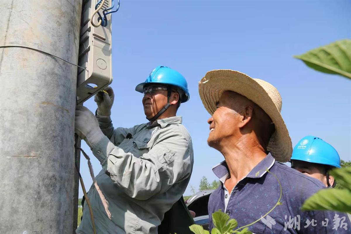 國網武漢市新洲區供電公司和平供電所技術員周偉對記者說道:“為加強高溫干旱防范,保障農業生產,國網武漢市新洲區供電公司迅速啟動抗旱保電應急預案,加快排灌用電“一站式”報裝服務,為農耕送上及時電,并開展泵站排灌、種植農戶用電檢查,全力保障抗旱灌溉用電。”