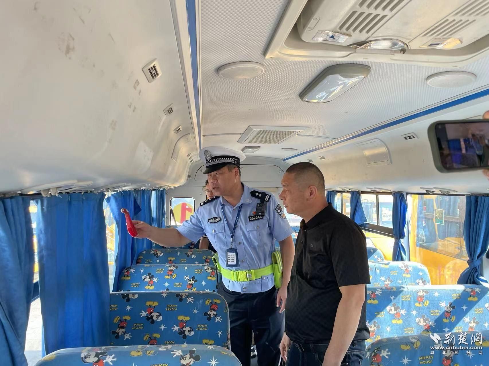 8月25日上午,荊州市公安局交管局民警在開學(xué)季前深入轄區(qū)校車公司進(jìn)行安全檢查。通訊員供圖
