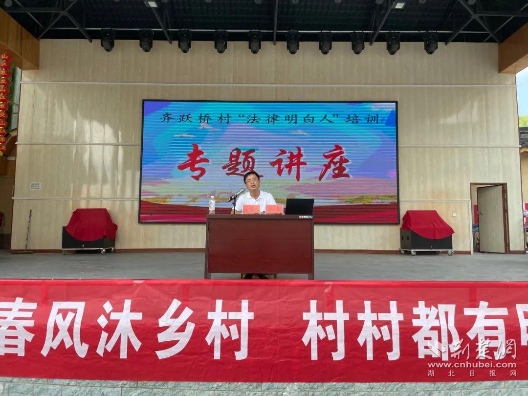 荊楚網(湖北日報網)訊 (記者肖慧婷 實習生樊佳琦 通訊員李佳)為推進鄉村“法律明白人”培訓工作,助力美麗法治鄉村建設,8月24日,利川市汪營鎮齊躍橋村舉行“法治春風沐鄉村 村村都有明白人”專題法治講座活動,湖北省“八五”普法講師團成員、華中科技大學法學院教授郭亮應邀授課,把法治課堂搬到鄉村。