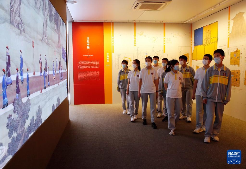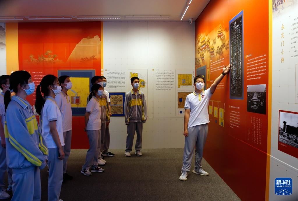 9月1日,北京二中學生在參觀北京中軸線主題展覽。新華社發(周良 攝)