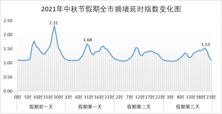 預計今年假期前一天因出城及通勤車流疊加,全市晚高峰擁堵延時指數峰值為2.30(嚴重擁堵)左右;假期首日部分錯峰出城車流將增加,全市擁堵延時指數預計在10時左右達1.60(輕度擁堵);節日期間預計擁堵指數將回落,整體約為1.25左右,為暢通狀態。