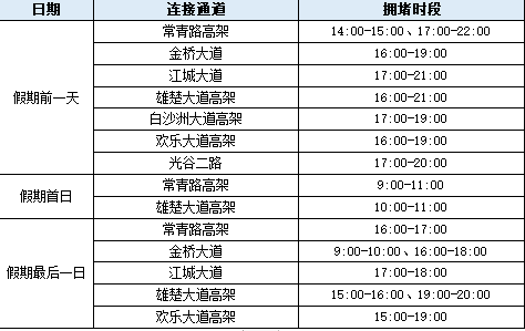 假期前一日因車流增多,市內道路交通壓力增大,易出現長時間擁堵。