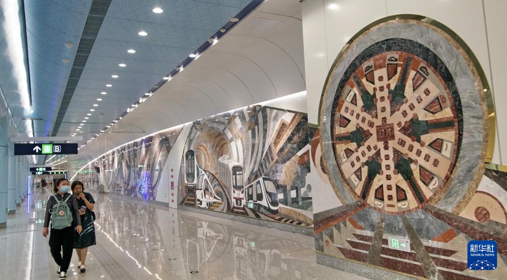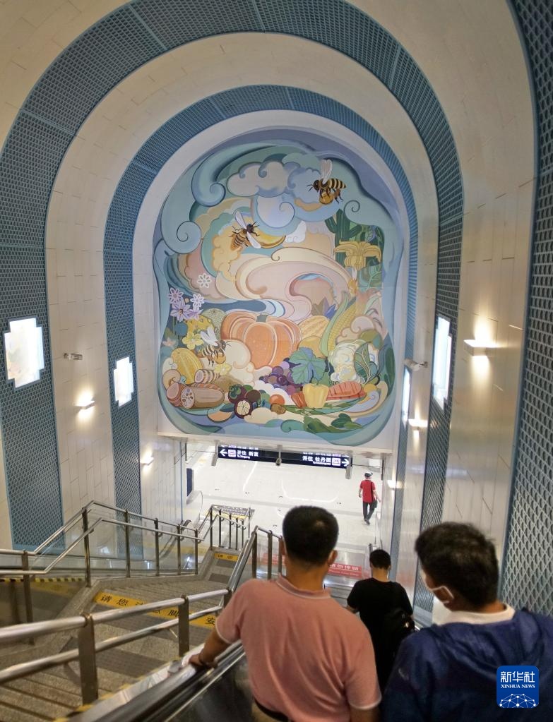 北京地鐵19號線牛街站內的繪畫和燈光藝術(9月9日攝)。新華社記者李欣攝