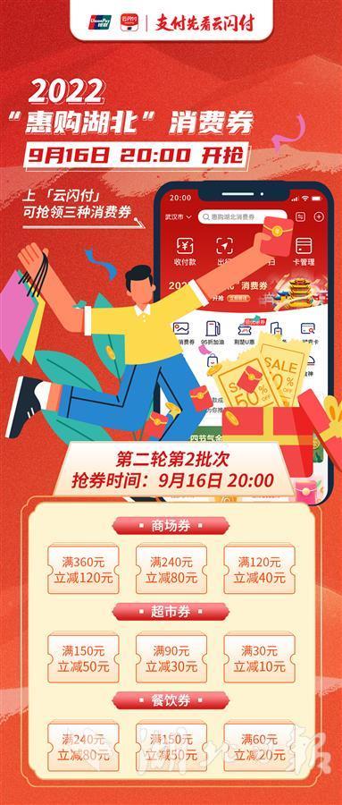 湖北日報訊(記者李朝霞、通訊員小山)剛過去的中秋假期,湖北消費券帶貨力強(qiáng)勁。9月16日晚8點,第二輪第二批“惠購湖北”消費券又將上線。