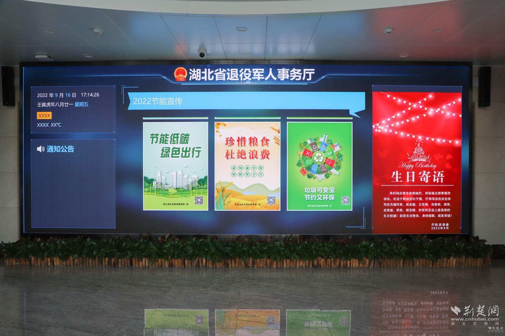 省退役軍人事務廳機關顯示屏展示的綠色節能海報。通訊員供圖