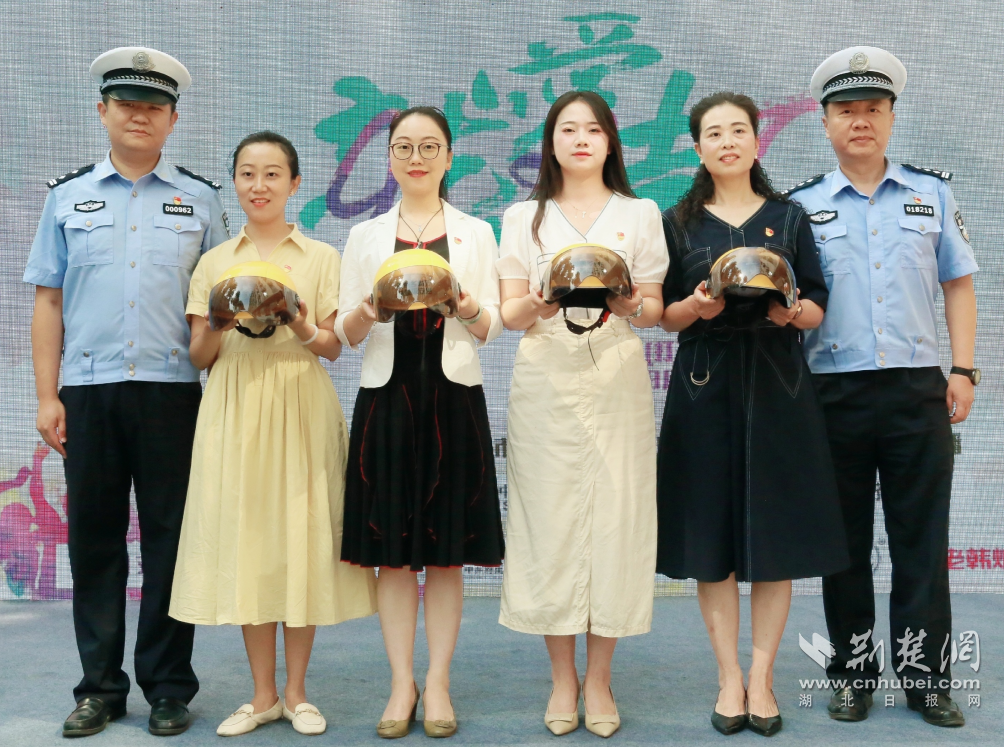 啟動(dòng)儀式上,交警代表與媒體主播共同演繹了節(jié)奏歡快的文明交通主題歌《我們?cè)诼飞稀罚睆V播電視臺(tái)、武漢市文明辦、武漢市公安局交通管理局等活動(dòng)主辦方領(lǐng)導(dǎo)先后致辭。江岸區(qū)二七街道操場(chǎng)社區(qū)、江漢區(qū)萬(wàn)松街道武展社區(qū)、硚口區(qū)六角亭街道學(xué)堂社區(qū)、洪山區(qū)洪山街道鴻嶺花園社區(qū)黨委書(shū)記作為全市社區(qū)代表受邀出席,共同發(fā)起文明出行倡議,并現(xiàn)場(chǎng)獲贈(zèng)“共享頭盔”。