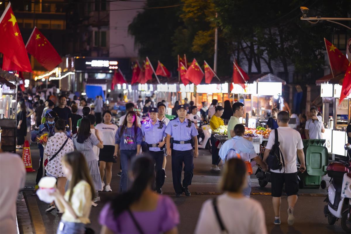 今年夏季以來,湖北公安緊扣城鄉(xiāng)社會治安特點,不斷調整優(yōu)化勤務模式,在廣場、商圈、夜市、車站等人員密集場所,24小時“見警察、見警燈、見警車”。