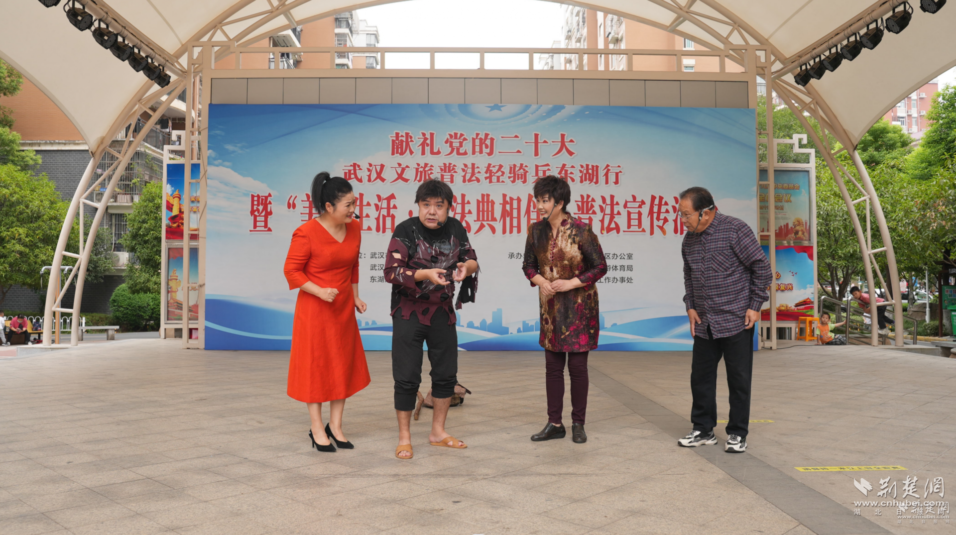 活動(dòng)中,武漢說唱團(tuán)帶來(lái)了群口快板《說說我們的民法典》、相聲《電詐無(wú)間道》、楚劇音樂小品《不信邪》、湖北大鼓《我要發(fā)財(cái)》、小品《都是集資惹的禍》等原創(chuàng)節(jié)目,采取群眾喜聞樂見的表演形式送法治演出進(jìn)社區(qū),為大家獻(xiàn)上一場(chǎng)精彩紛呈的法治文化大餐。