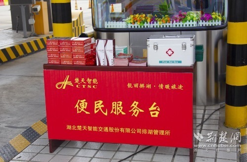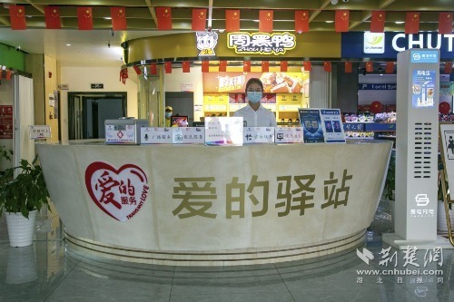 在孝感服務區入口,即可以看到“愛的驛站”服務臺,這是湖北交投實業公司打造的志愿者服務品牌,可提供路況信息查詢、咨詢投訴、無線上網、急救藥品、簡易維修工具、廣播系統等便民服務項目,并為司乘提供基礎應急救助服務。