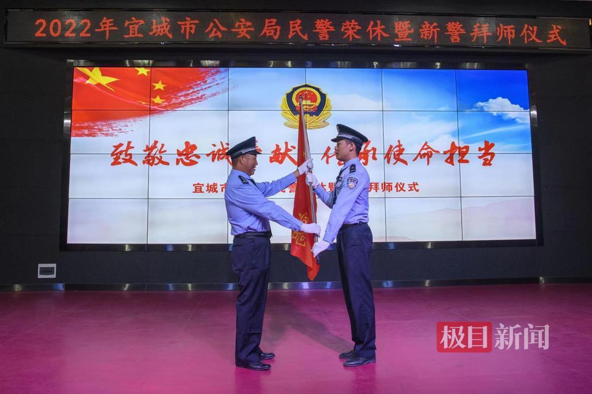 接下來,退休民警代表向青年民警傳遞“宜城公安局”旗幟,講述自己的從警故事:“選擇了警察這個(gè)職業(yè)從沒有后悔過,現(xiàn)在退休了,我會(huì)繼續(xù)關(guān)心公安工作,為公安工作獻(xiàn)言獻(xiàn)策”,號(hào)召新警接續(xù)奮斗,推進(jìn)宜城公安工作再上新臺(tái)階。
