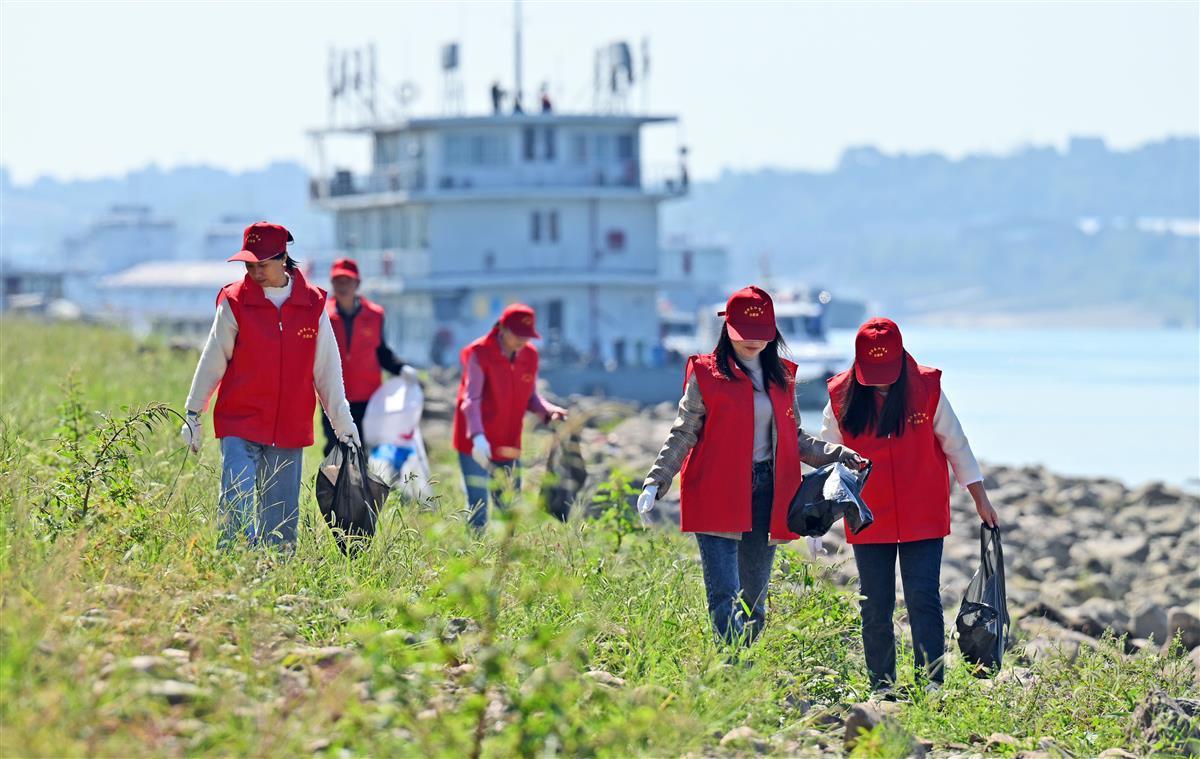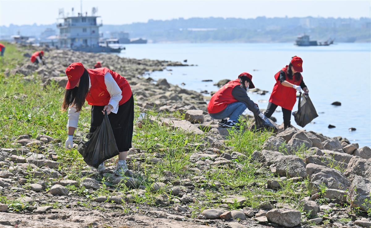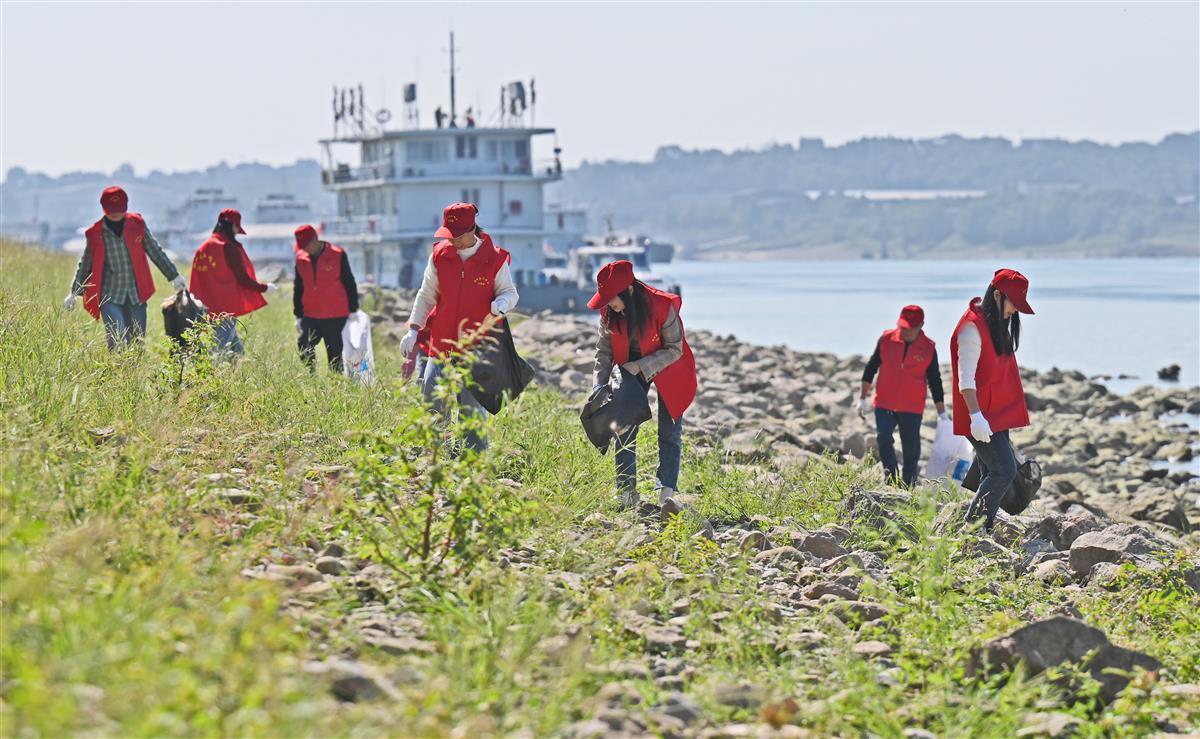 10月11日,秋高氣爽的宜昌市長江岸線猇亭段,一艘“長江哨兵”清漂船行駛在江心,火紅的隊旗獵獵作響,船上共五名“長江哨兵”志愿者,手持清漂網兜,在江中巡邏打撈,岸邊,環保志愿者在清潔枯水期間裸露出水面的江底垃圾。猇亭“長江哨兵”是當地呵護長江的志愿服務隊的總稱,從2018年開始,猇亭區“長江哨兵”志愿服務隊由以往的巡江、清漂、凈灘等單一的志愿服務,逐步向政策理論宣講、科普、法律服務等服務長江大保護、服務群眾的多元化、全方位的志愿服務活動轉變。目前,猇亭區建成“1個總隊+12個支隊+21個分隊+N個小隊”的志愿隊伍體系。重點圍繞“長江哨兵”志愿服務理念,依托全市統一開發運營的“宜昌志愿”微信小程序,實現志愿者注冊、計時、嘉獎激勵等線上一體化運行和志愿服務“點單、派單、接單、評單”線上線下精準對接。“長江哨兵”志愿者總人數已達14045人。(湖北日報全媒記者 劉曙松 通訊員 胡夢瀟 譚雪嬌 攝)
