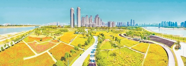 近年來,硚口不斷推進城市更新與生態修復、功能完善并舉,以創建國家生態園林城市、國際濕地城市為重點,圍繞“一谷兩帶,三園五道,十廊百景”的總框架,加速建成“兩帶三園”“十廊”(十條垂江綠廊)“百景”(100個綜合公園、社區公園、口袋公園)和一批特色林蔭道,串起“濕地之城,花漾硚口”的生態版圖。