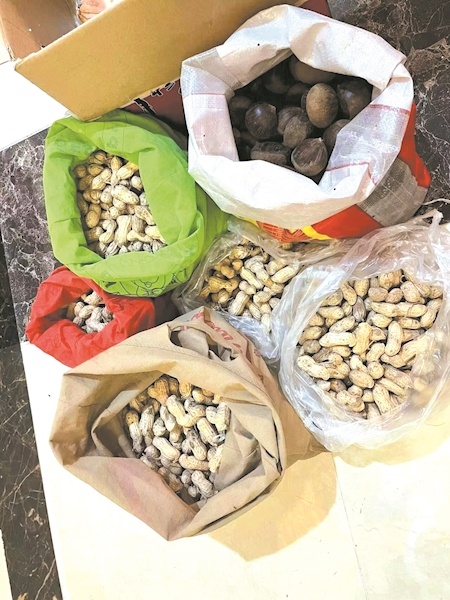 在煙臺,賈永婷給老人買了不少吃的東西。臨走時,孫爺爺和村干部又給她裝了一些花生等當地特產,讓她帶回去。