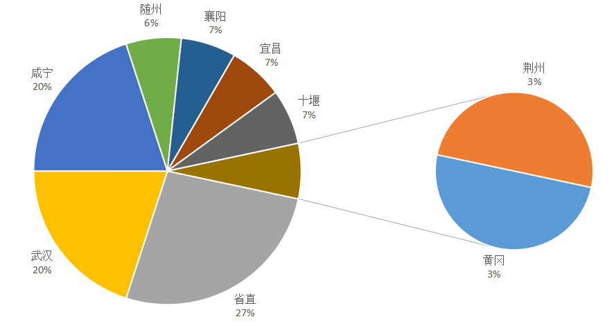 從區域分布來看,BCI指數排名前三十的政務微博主要集中在省直(8家)、武漢(6家)和咸寧(6家)。隨州、襄陽、宜昌、十堰均有2家單位入圍;黃岡和荊門均有1家單位入圍。
