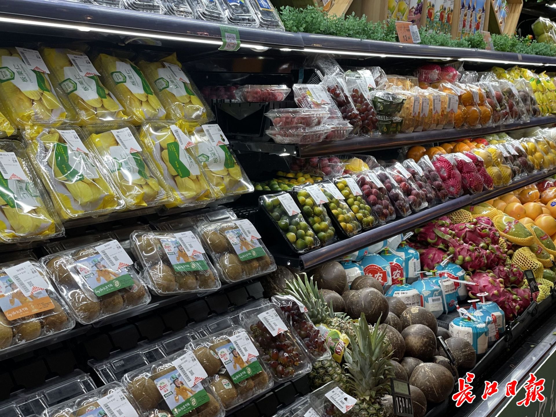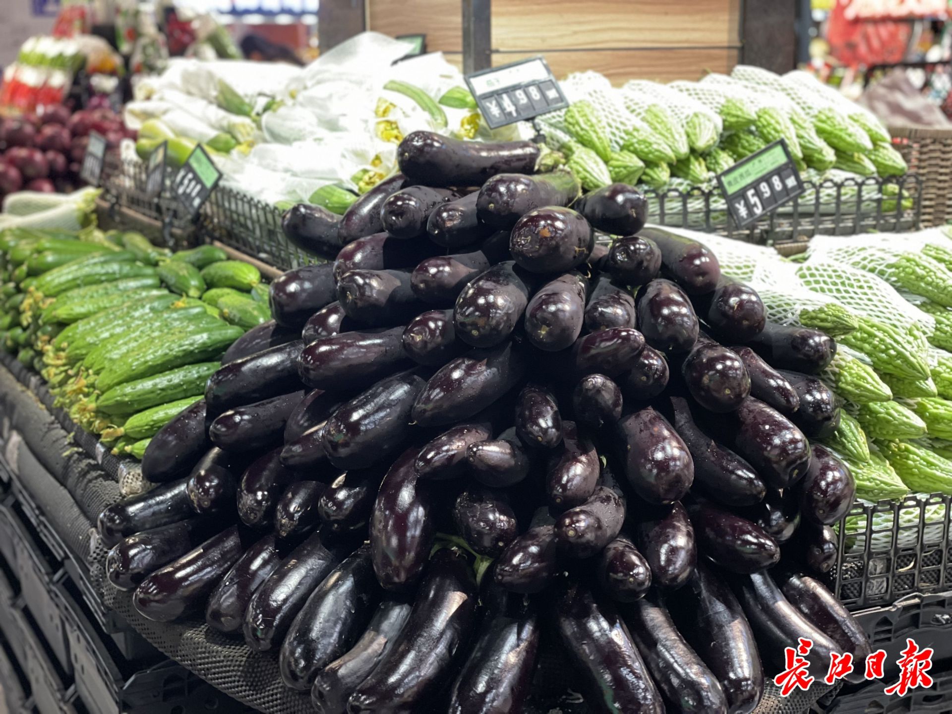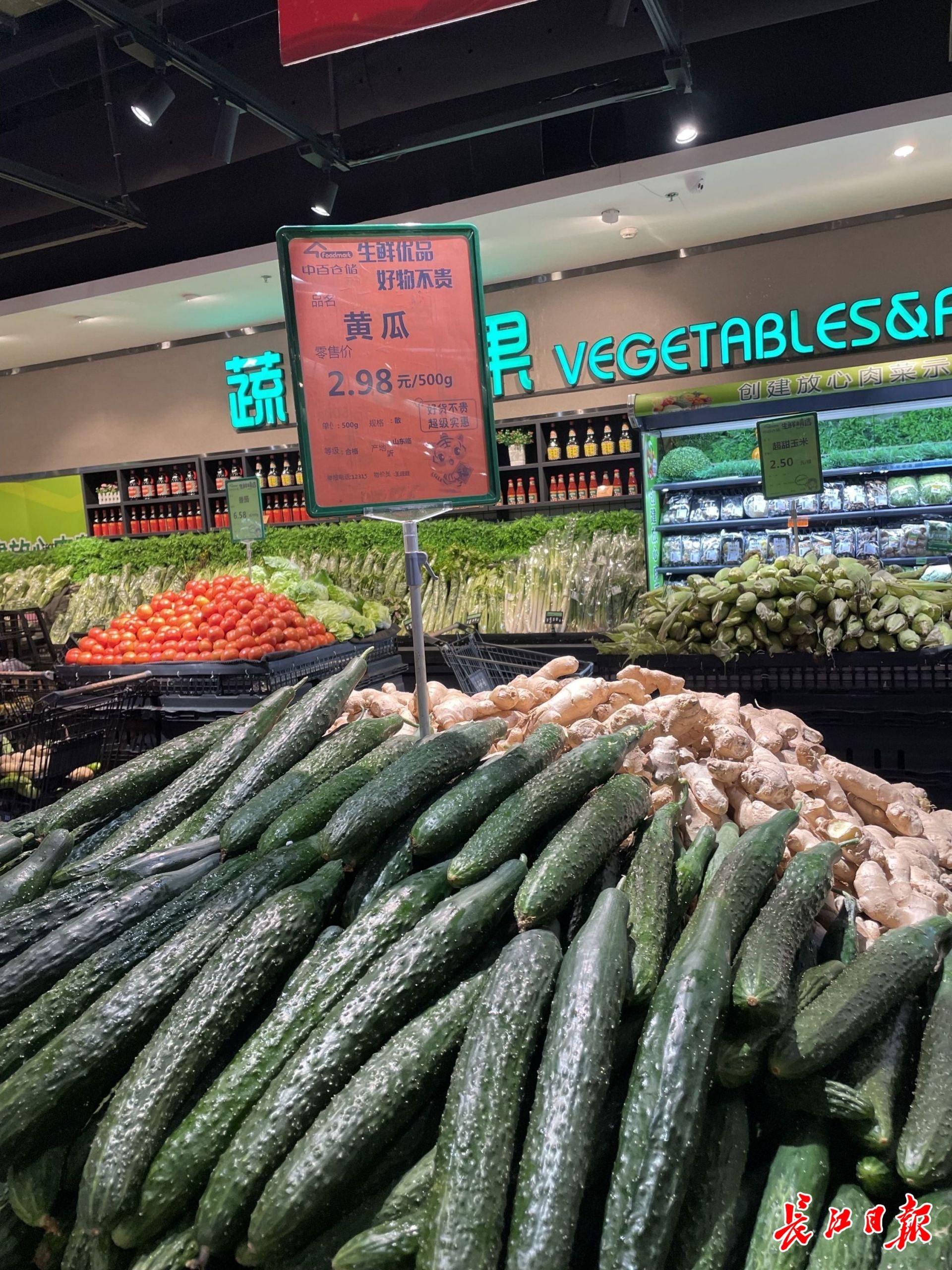 進入店內,首先進入視野的是生鮮區,新鮮的豆角、青椒等,滿滿當當排列。超市工作人員介紹,今日供應的應季蔬菜就多達11個品種,武漢市民喜歡的應季食藕、番茄等,貨源充足,價格平穩。中百倉儲每日還會提供低于市場價的生鮮優品,記者看到,當天推出的是黃白菜、黃瓜,每斤價格分別是2.58元、2.98元。