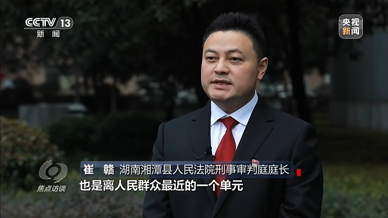 湖南湘潭縣人民法院刑事審判庭庭長 崔贛:我覺得法庭作為法院最小的一個單元,也是離人民群眾最近的一個單元,我們要用好法庭法治保障的武器,用更真摯的感情去為老百姓服務。