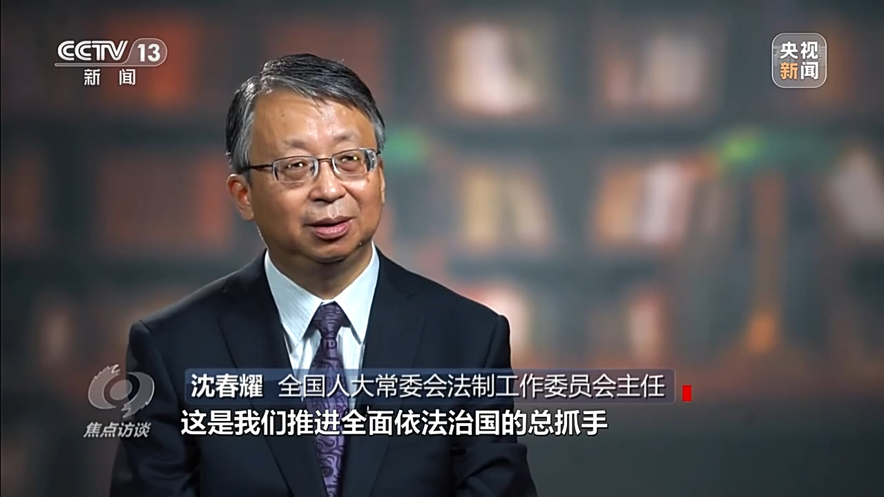 全國人大常委會法制工作委員會主任 沈春耀:建設社會主義法治國家,這是我們的一個奮斗目標,很關鍵的是中國特色社會主義法治體系,這是我們推進全面依法治國的總抓手。具體包括五個子體系,要形成完備的法律規范體系,高效的法治實施體系,嚴密的法治監督體系,有力的法治保障體系和完善的黨內法規體系,把法治領域從全過程各領域各方面都概括進去。