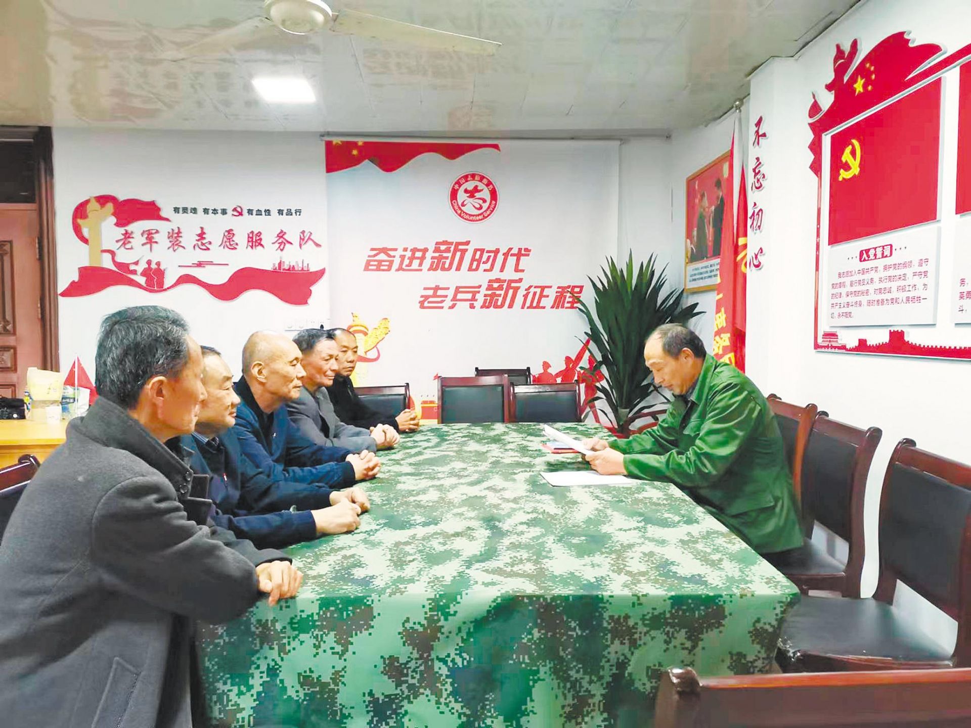 咸寧市咸安區(qū)老軍裝志愿服務(wù)隊組織黨員代表在“老兵工作室”學(xué)習(xí)黨的二十大精神。咸安區(qū)“最美退役軍人”余宏說,黨的二十大報告中提出“做好退役軍人服務(wù)保障工作”“鞏固發(fā)展軍政軍民團(tuán)結(jié)”,作為一名老兵,自己要帶頭學(xué)習(xí)好、宣傳好、貫徹好黨的二十大精神,團(tuán)結(jié)服務(wù)退役軍人,傳播正能量。