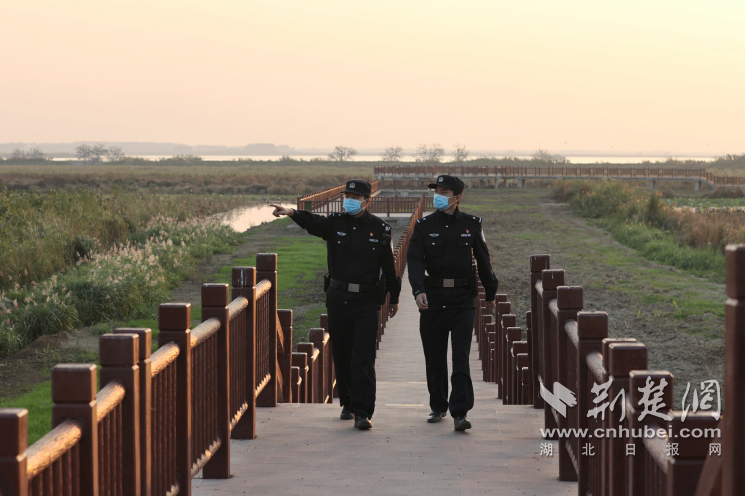 沉湖濕地自然保護區作為武漢唯一的國際重要濕地,是此次國際濕地大會參觀現場之一。對于武漢市公安局蔡甸區分局消泗鄉派出所民警柯宇帆來說,這個地方一點兒都不陌生,他幾乎每天都要和沉湖濕地保護志愿者服務隊的隊員們一起來此巡護。