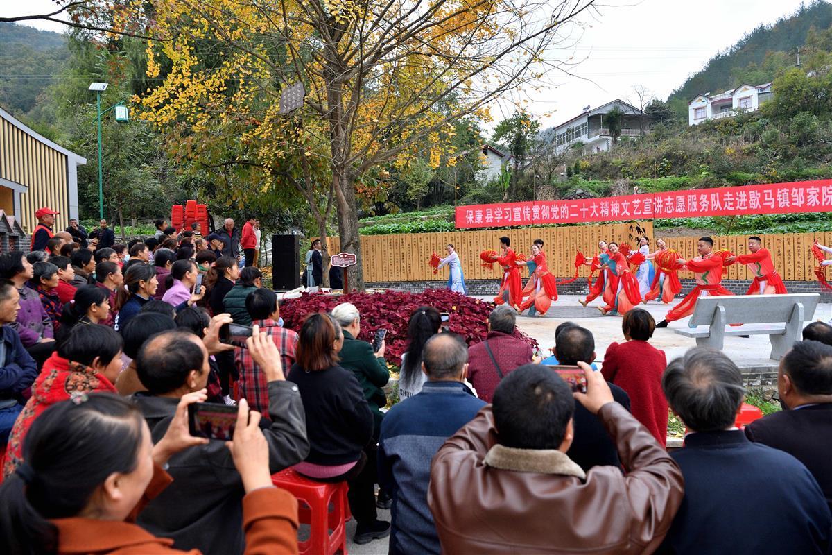 11月3日下午,湖北保康縣學(xué)習(xí)宣傳貫徹黨的二十大精神文藝宣講志愿服務(wù)隊走進保康縣歇馬鎮(zhèn)鄒家院村,用群眾喜聞樂見的形式把黨的二十大精神送到群眾家門口。