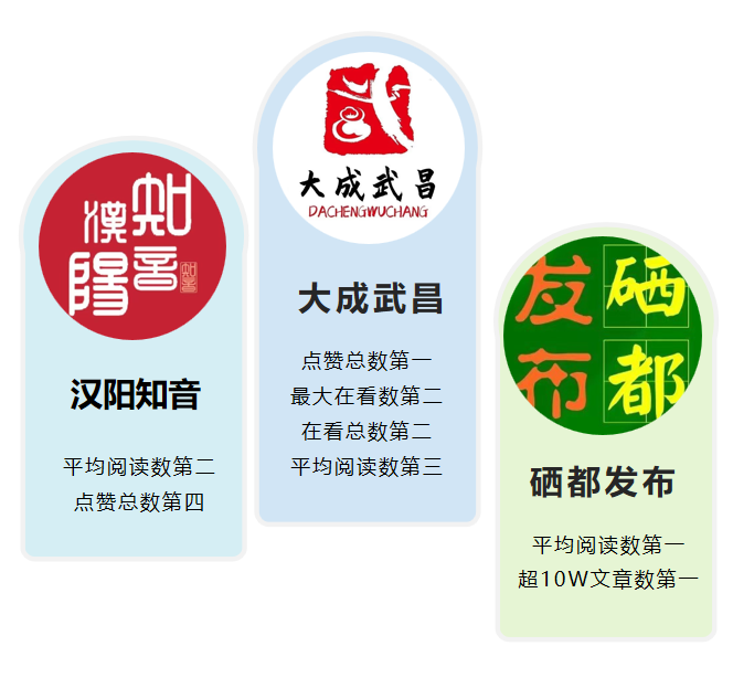 從原創(chuàng)文章閱讀量前十排行榜來看,“硚口發(fā)布”攜一篇稿件居榜首,“蔡甸新聞”攜一篇稿件位居第二位,“曾都發(fā)布”攜4篇文章入圍,分別位列第三、四、八、十位,“今點黃州”攜1篇稿件位居第五位,“新江陵”攜1篇稿件位居第六位,“麻城發(fā)布”攜1篇稿件位居第七位,“硒都發(fā)布”攜1篇稿件位居第九位。