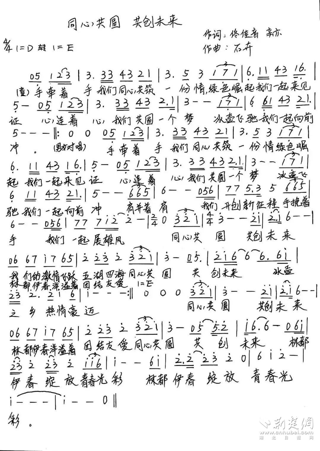 此歌曲的主旋律是詠唱此次賽事的主題語:同心共圓、共創未來,并在創作過程中,充分融入伊春的地域特色及人文風尚。本次賽事主題語立意高遠,語境宏闊。同心共圓一詞,源自于黨的二十大報告“形成同心共圓中國夢的強大合力”,體現著中華民族團結向上的精神風貌,也形象的契合了冰壺的運動態勢;共創未來一詞取自北京冬奧精神,展現著競技體育的開拓進取之姿,蘊含著眾人攜手團結向前的深意。同時,本主題歌注重體現林都伊春新貌,把林區人民牢記習近平總書記囑托,轉型發展、綠色崛起,致力于“讓老林區煥發青春活力”的昂揚斗志詠唱出來,以高亢激昂的歌聲唱響主旋律,傳播正能量,鼓舞信心、樹立形象、展示資源、助力振興。
