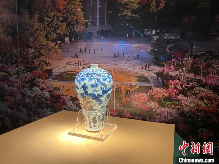 最為人所知的“中國瓷器三絕之一”的元青花蕭何月下追韓信圖梅瓶受觀眾歡迎。 申冉 攝