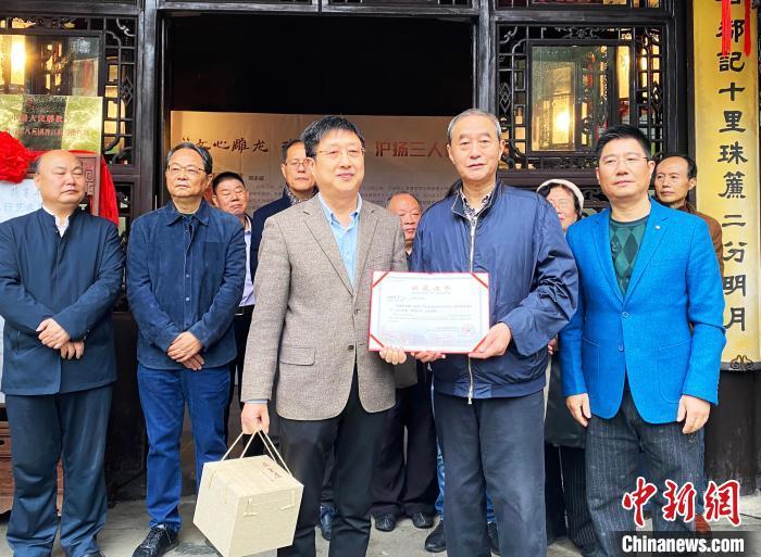 揚州博物館館長束家平接受捐贈并頒發證書。 崔佳明 攝