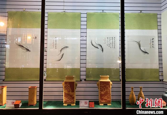 展出海派紫砂雕刻藝術、漆書、魚系列書畫等近百件作品。 崔佳明 攝