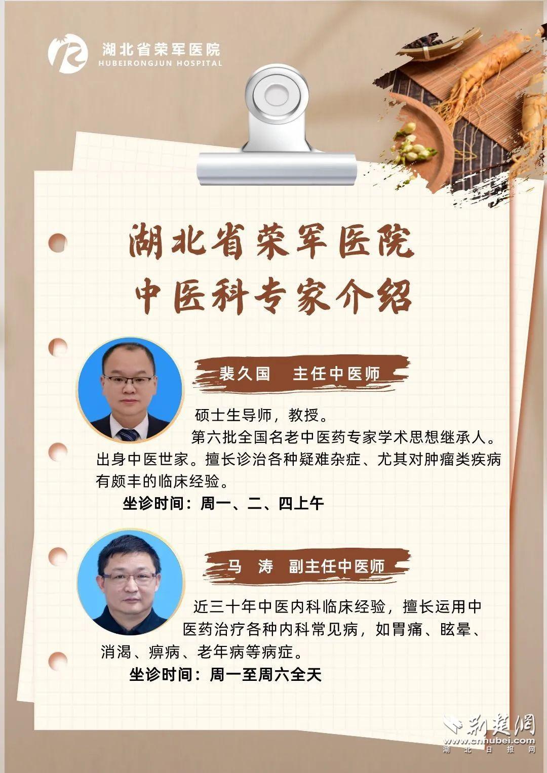 荊楚網(湖北日報網)訊(通訊員孫四海)近日,在湖北省榮軍醫院“膏方節”舉辦之際,該院副院長鄧嵐、裴久國一行來到榮療科,看望慰問在院休養的榮譽軍人,并為他們把脈問診、辨證施治,送上“量身定制”的膏方,開展中醫秋冬養生知識宣傳。