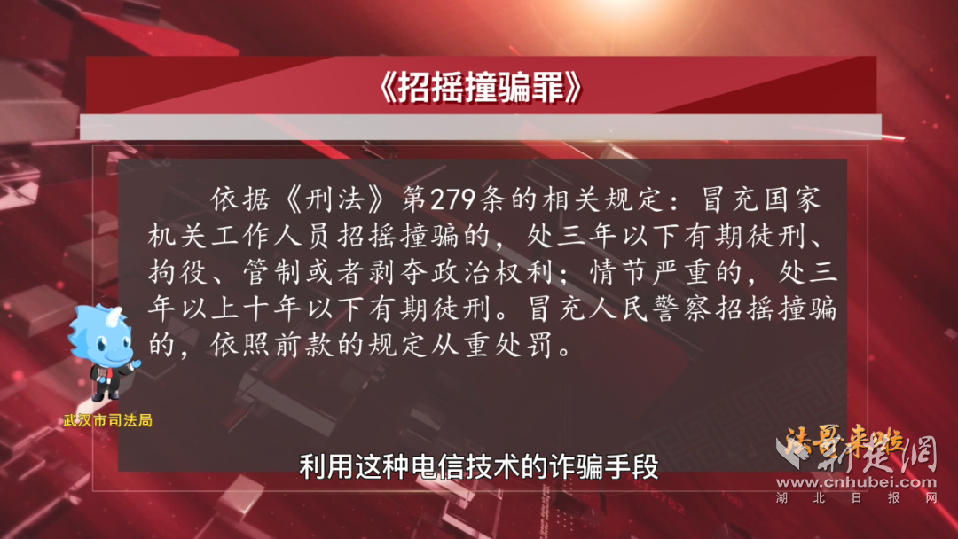 武漢市民法典講師團專家成員,湖北立豐律師事務所劉勛主任說,當詐騙分子以非法占有為目的,利用國家工作人員、機關工作人員這種身份,利用電信技術的詐騙手段,針對對不特定的人實施詐騙,如果數額未達到詐騙罪的犯罪構成的話,可以以招搖撞騙罪來進行處罰。