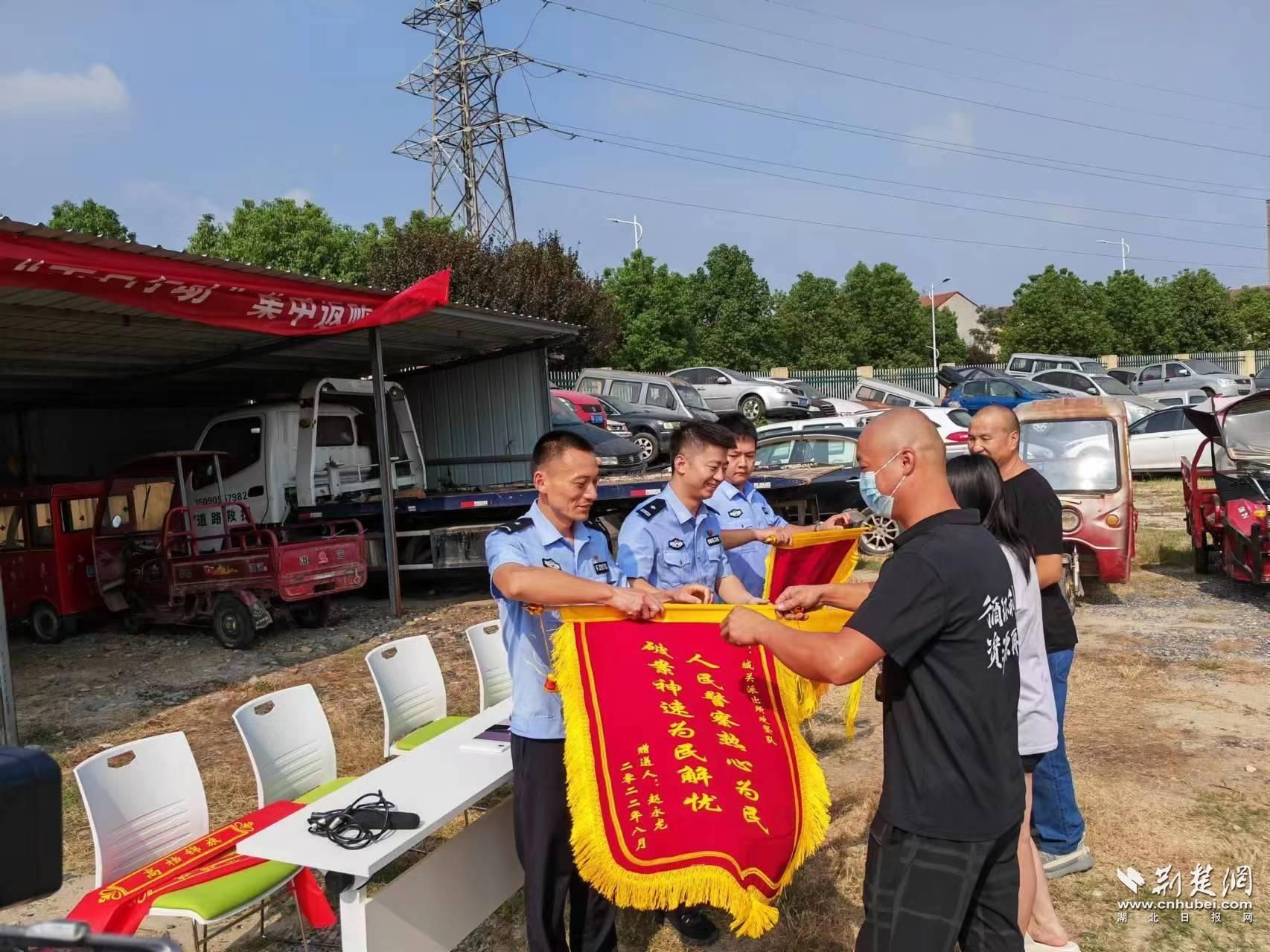 獲取嫌疑人活動規律后,他協助辦案民警趕赴河南省鄧州市,在該地成功將盜竊犯罪嫌疑人曾某抓獲,隨后將同案嫌疑人歐某抓獲。后查明,2018年1月份至2022年7月間,犯罪嫌疑人曾某獨自或伙同歐某二人竄至谷城縣城關鎮泰山路、筑陽路等地,采用自制T型撬鎖工具盜竊三輪摩托車、電動車作案10起,盜得10輛贓車,涉案價值6萬余元,后銷贓至河南省鄧州市林扒鎮、老河口市薛集鎮等地,獲贓款1萬多元。2022年9月15日上午,城關派出所召開了百日行動集中返贓大會,10名失主從專班民警手中接過追回的10輛被盜的摩托車電動車,群眾自發地向專班贈送7面錦旗表達誠摯謝意。