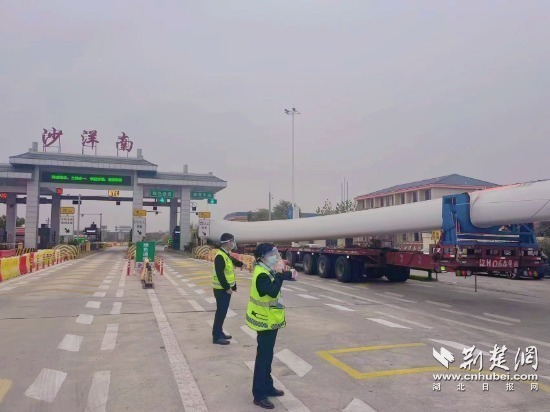 荊楚網(wǎng)(湖北日報網(wǎng))訊(記者趙秀琳 通訊員劉雅琪 余玲)“天順風能葉片廠現(xiàn)有9輛裝有葉片的車輛計劃從沙洋南收費站上高速,特此報備。”11月29日,湖北交投隨岳運營公司沙洋南收費站收到一條預約通行信息,站所人員立即行動、快速處置,僅35分鐘內就保障了9輛大件運輸車輛迅速過站通行。