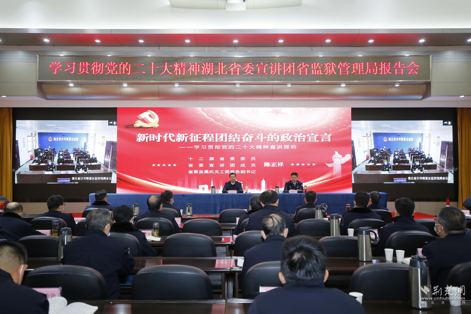 荊楚網(湖北日報網)訊 (記者肖慧婷 通訊員張瑞卿)12月5日,學習貫徹黨的二十大精神湖北省委宣講團走進省監獄管理局。省委宣講團成員、省委直屬機關工委常務副書記陳正祥作宣講報告。省監獄管理局黨委書記、局長熊亞平主持報告會。