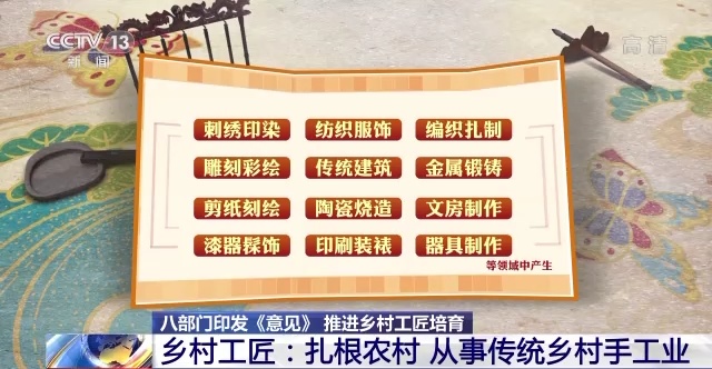 《意見(jiàn)》提出,鄉(xiāng)村工匠主要為縣域內(nèi)從事傳統(tǒng)工藝和鄉(xiāng)村手工業(yè),能夠扎根農(nóng)村,傳承發(fā)展傳統(tǒng)技藝,轉(zhuǎn)化應(yīng)用傳統(tǒng)技藝,促進(jìn)鄉(xiāng)村產(chǎn)業(yè)發(fā)展和農(nóng)民就業(yè),推動(dòng)鄉(xiāng)村振興發(fā)展的技能人才。目前,主要從刺繡印染、紡織服飾、編織扎制、雕刻彩繪、傳統(tǒng)建筑、金屬鍛鑄、剪紙刻繪、陶瓷燒造、文房制作、漆器髹飾、印刷裝裱、器具制作等領(lǐng)域中產(chǎn)生。