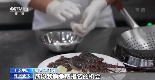 譚志洪,在廣東中山的一家餐廳擔(dān)任主廚。前不久,他研發(fā)了一道名為“東巴醬焗小青龍”的新菜,上市后受到顧客的好評(píng)。而他更是用這道菜,參加了中山市鄉(xiāng)村工匠職稱烹飪專業(yè)的中級(jí)評(píng)審。