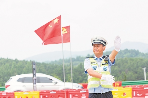 黃遠波在武勝關執勤 照片由湖北交警提供